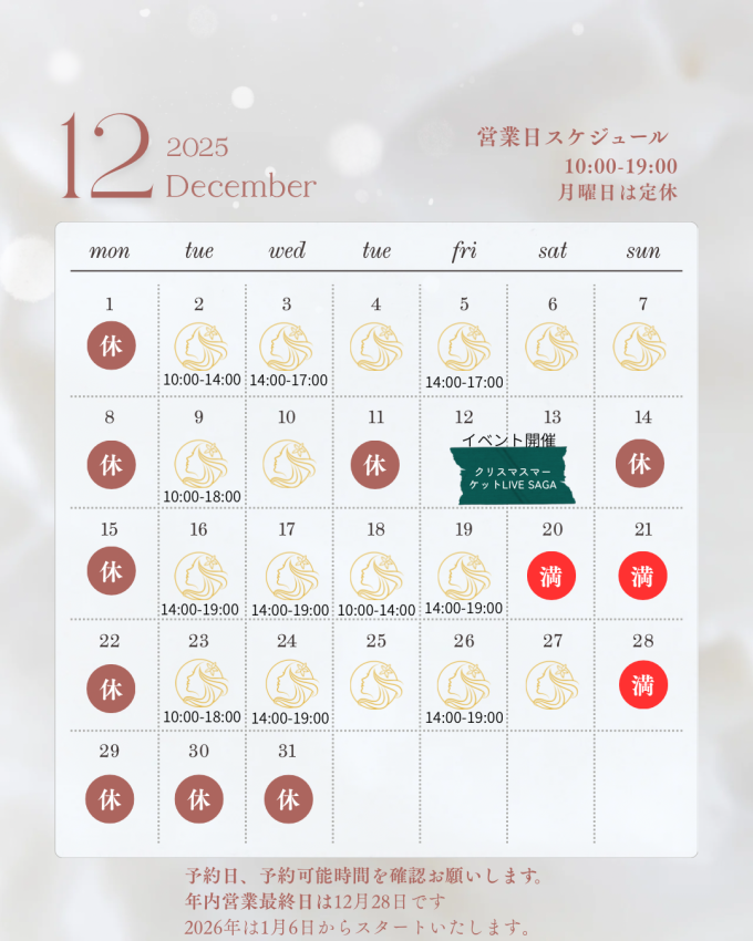 今年の疲れは今年のうちにと毎年恒例の「言葉」になりますが、身体のケアもお忘れなく!